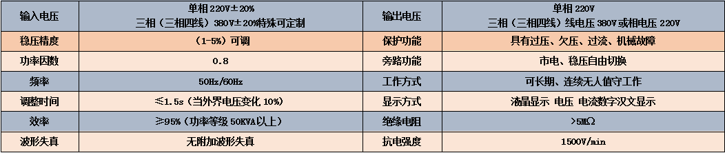 (1)實用:主電路采用補償結構,功率容量大,運行維護簡便。高達±20%的穩壓范圍和±2%的穩壓精度,能夠充分滿足您和負載的要求。