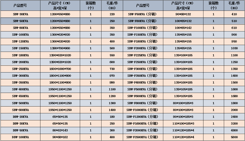 sbw50kva電力穩壓器與其它型式380v升壓器穩壓器相比具有容量大、效率高、無波形畸變、電壓調節平穩等優點,輸出可以選擇220V/200V的不同電壓等優點。