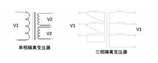 隔離變壓器是最常見變壓器的一種,其低壓、高壓繞組分別由分離的線圈繞制并無電氣上的連接,且次級繞組也不與大地做連接。原理圖如下: