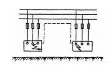 圖2中的虛線是等電位聯(lián)結線。如果沒有等電位聯(lián)結線,當隔離回路中兩臺相距較近的設備發(fā)生不同相線的碰殼故障時,這兩臺設備的外殼將帶有不同的對地電壓。如果有人同時觸及這兩臺設備,則接觸電壓為線電壓,電擊危險性極大。因此,如隔離回路帶有多臺用電設備(或器具),則各臺設備(或器具)的金屬外殼應采取等電位聯(lián)結措施。這時,所用插座應帶有等電位聯(lián)結的專用插孔。