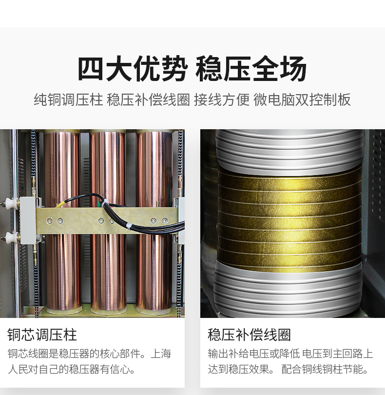 穩壓器大多數人都知道,是使輸出電壓穩定的設備。它是由調壓電路、控制電路、及伺服電機等組成。當輸入電壓或負載變化時,控制電路進行取樣、比較、放大,然后驅動伺服電機轉動,使調壓器碳刷的位置改變,通過自動調整線圈匝數比,從而保持輸出電壓的穩定。有點廢話了,下面正式進入主題。