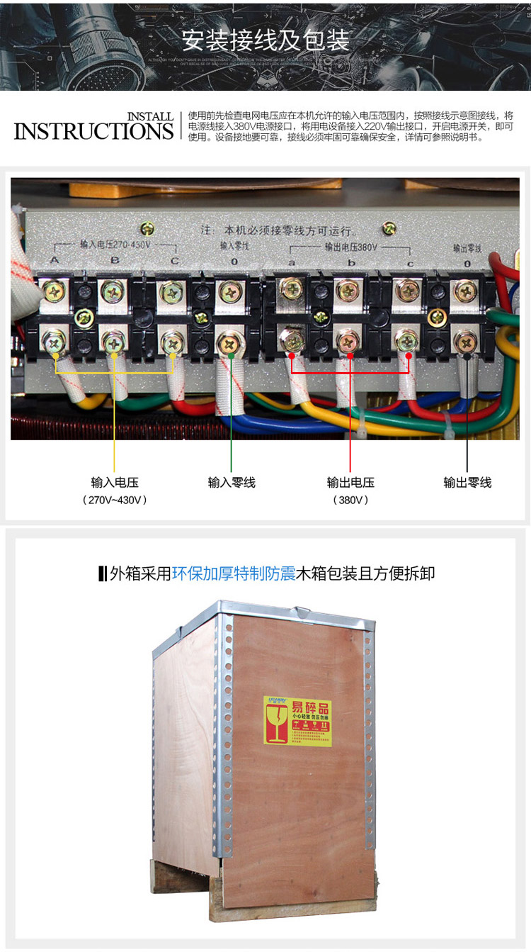 工業區配電不良,以及近年來國內電力嚴重不足,致使電力品質低落,因種種外部環境的影響,電壓不是很穩定,時高時低,相位之間電壓差別很大,造成許多高精密的機器設備生產用機器,故障率偏高,生產良率低,所以需要一款電源穩壓器來解決問題,只要經過穩壓的設備,就可降低機器故障率,提高生產良品率。穩壓器字義就是穩定電壓作用的設備,那么一般穩壓器安裝在哪里很多人不清楚,今天這里給大家講解一下穩壓器安裝在哪里,什么位置好,和穩壓器的接線是怎么接線的。